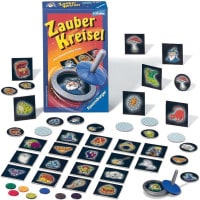 ひとりがイラストの内容を見ずに円形のイラストタイルをコマにセットして、手で回します。そして、そっとコマの先端を取ると、コマの中でイラストが回転しているのが見えます。どのイラストが回転してるのか当てるゲームです。