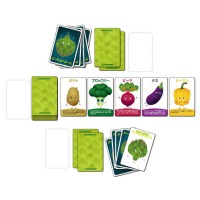 自分の番が来たら、山札から5枚引き手札にしたら場に並んでいる他の野菜カードの中から1枚を手札に加えます。