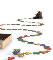 5匹のアリが、食べ物でいっぱいの道を進んでいきます。自分の番が来たら、いずれかのアリを道の先にある同じ色の食べ物まで移動させ、その前後にあるどちらかの食べ物を確保し、ゲーム終了時に得点にするために手元に置いておきます。
